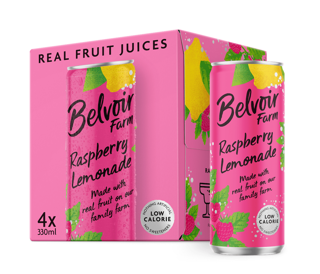 Belvoir Farm Raspberry Lemonade is 100% natural and made with real pressed raspberry and fresh lemon juices blended with pure spring water for a refreshingly fruity alternative to regular lemonade.